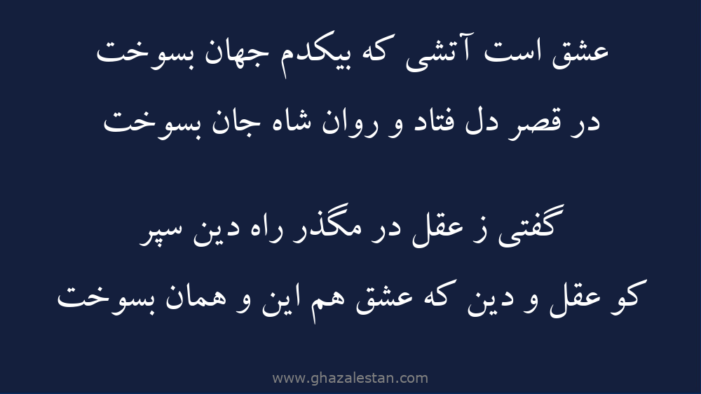 عشق است آتشى که بيکدم جهان بسوخت
