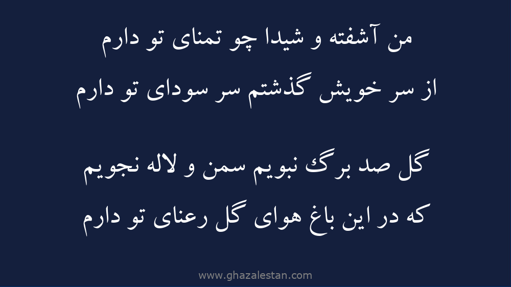 من آشفته و شيدا چو تمناى تو دارم