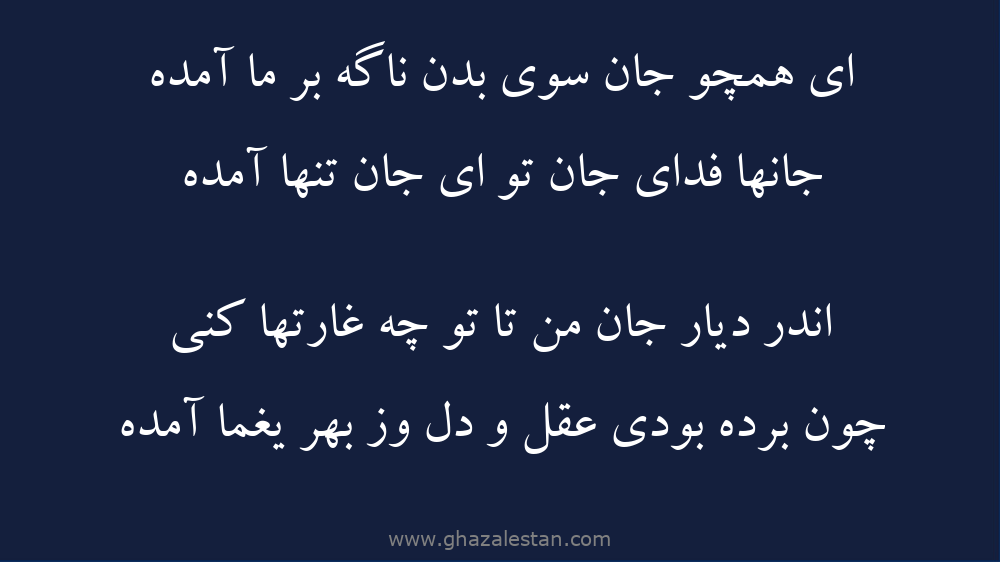 اى همچو جان سوى بدن ناگه بر ما آمده