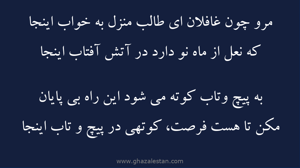 مرو چون غافلان اى طالب منزل به خواب اينجا