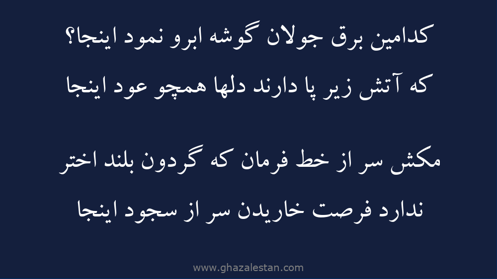 کدامين برق جولان گوشه ابرو نمود اينجا؟