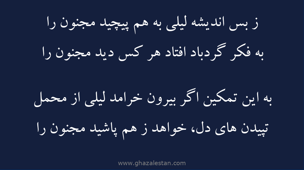 ز بس انديشه ليلى به هم پيچيد مجنون را
