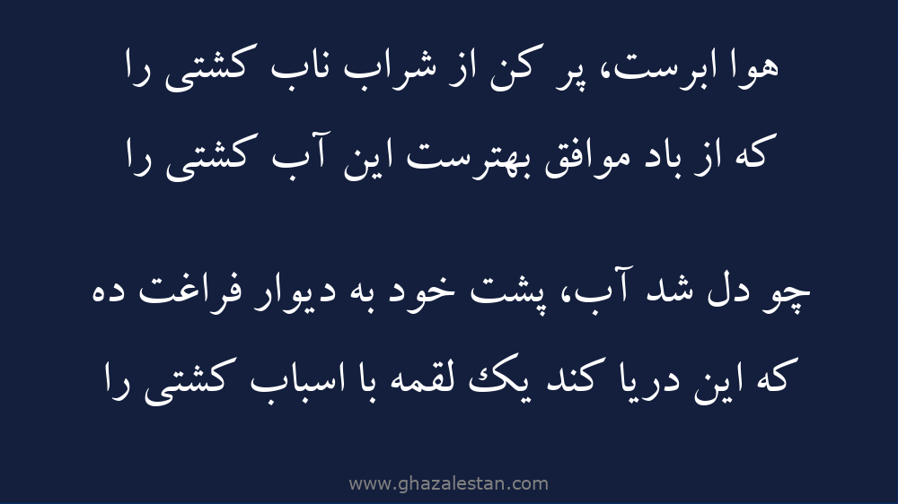 که از باد موافق بهترست اين آب کشتى را