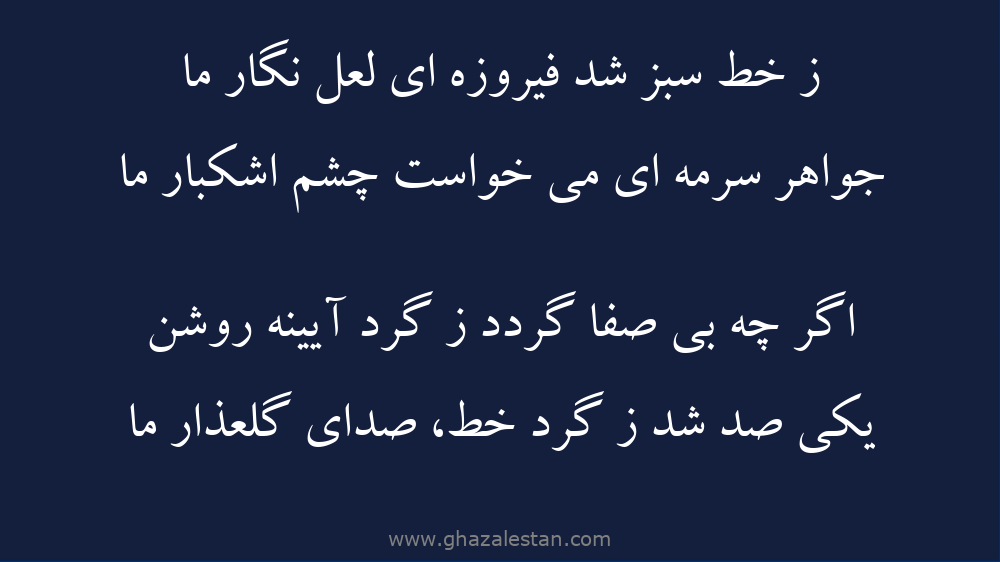 ز خط سبز شد فيروزه اى لعل نگار ما