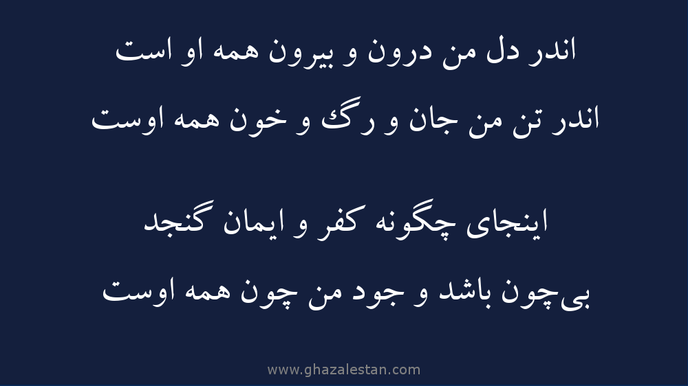 اندر دل من درون و بیرون همه او است