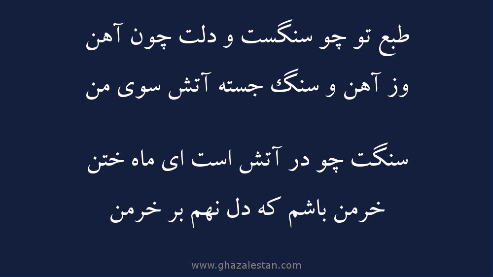 طبع تو چو سنگست و دلت چون آهن