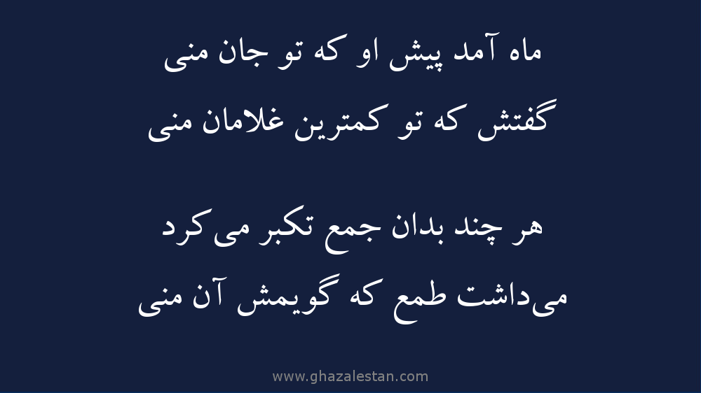 گفتم صنما ز عشق تو بخروشم لب بر لب من نهاد و خاموشم کرد