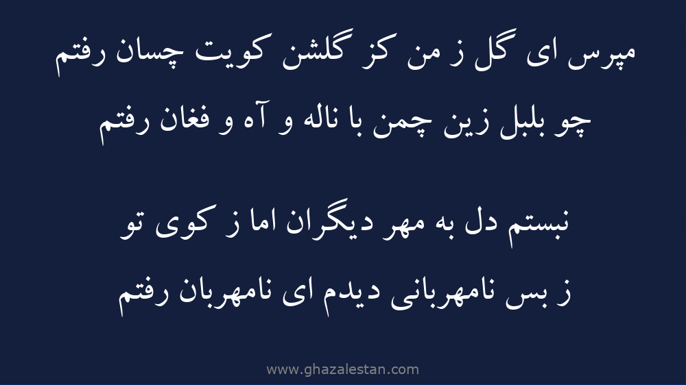 مپرس اى گل ز من کز گلشن کويت چسان رفتم