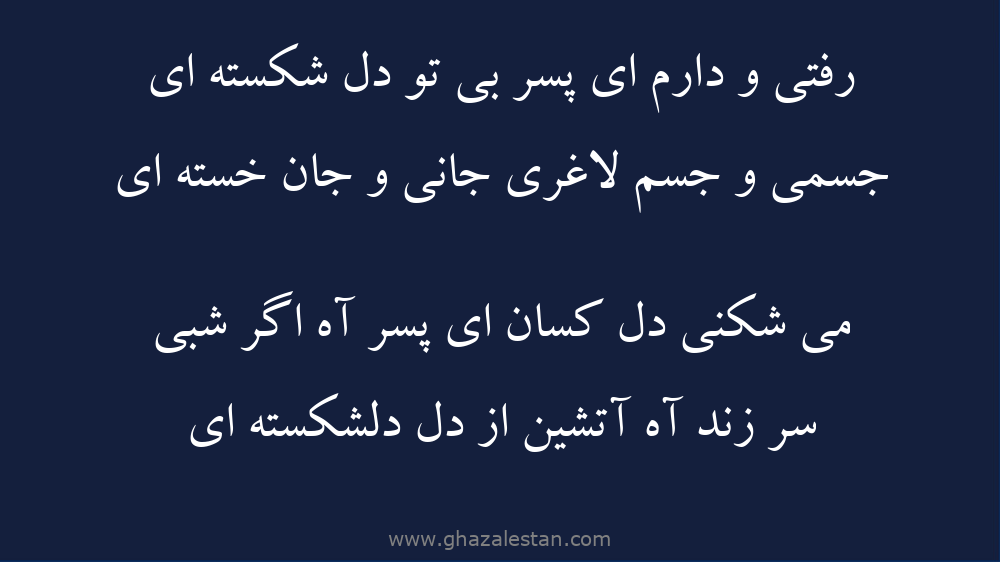 رفتى و دارم اى پسر بى تو دل شکسته اى