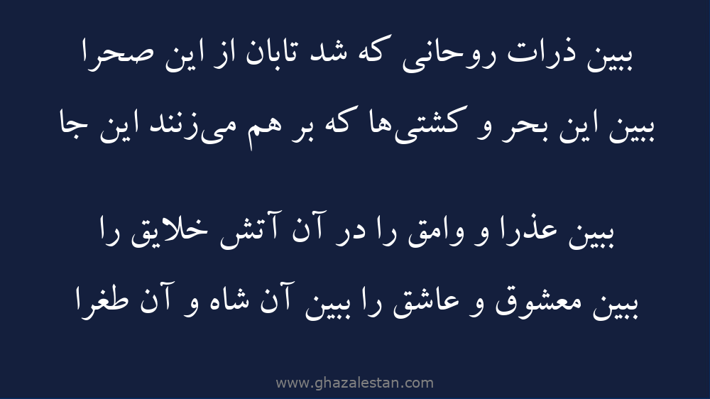 ببین ذرات روحانی كه شد تابان از این صحرا