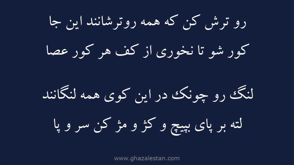 لته بر پای بپیچ و كژ و مژ كن سر و پا
