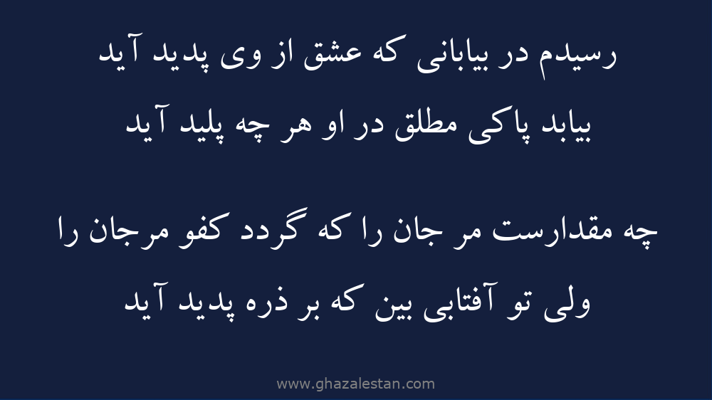 رسیدم در بیابانی كه عشق از وی پدید آید