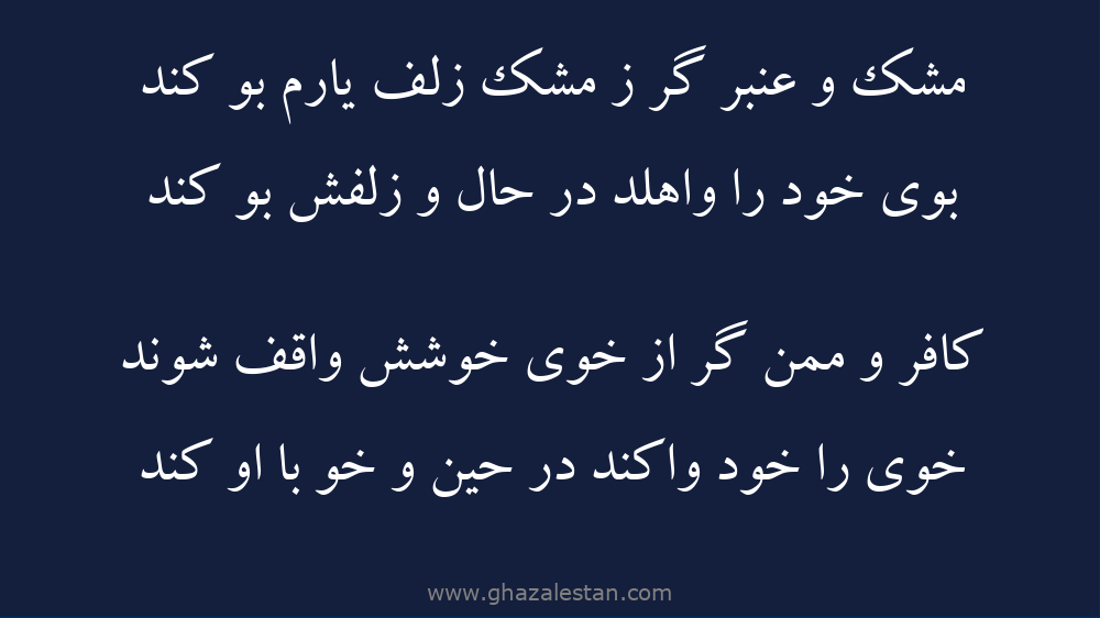 مشك و عنبر گر ز مشك زلف یارم بو كند