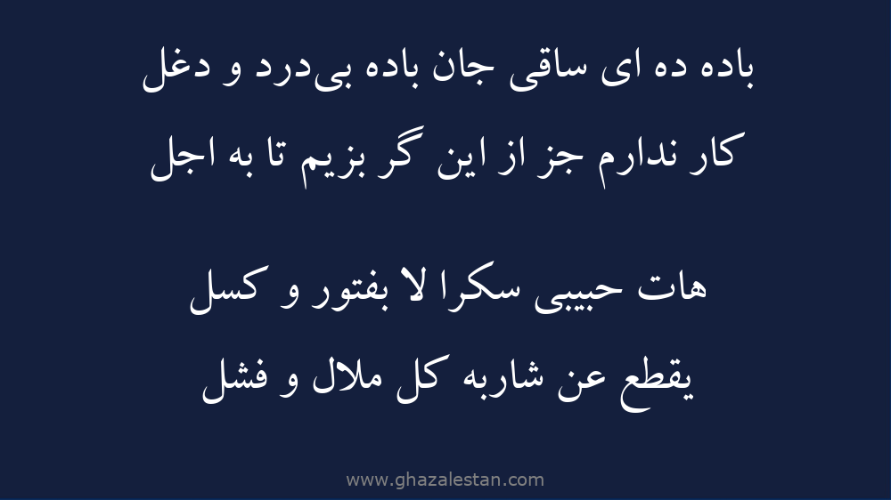 ای قدح امروز تو را طاق و طرنبیست بیا