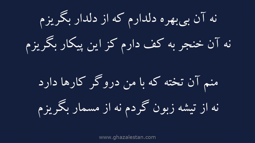 نه آن خنجر به كف دارم كز این پیكار بگریزم