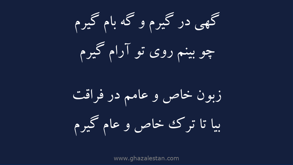 گهی در گیرم و گه بام گیرم