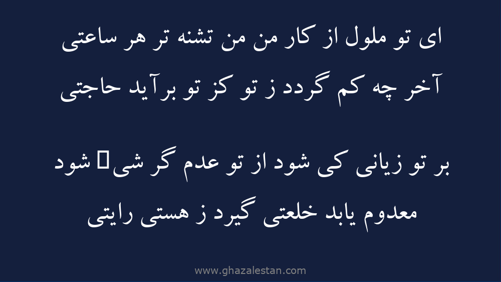 ای تو ملول از كار من من تشنه تر هر ساعتی