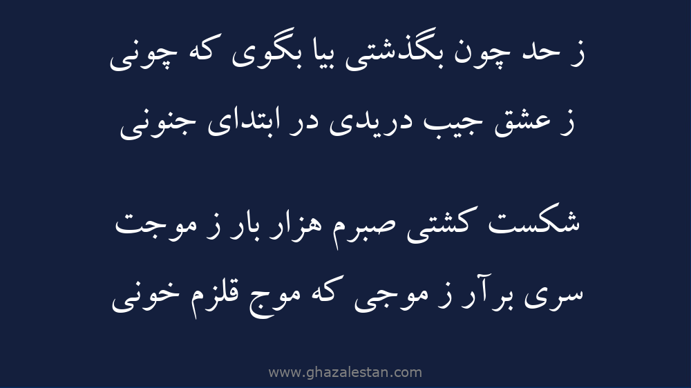 ز حد چون بگذشتی بیا بگوی كه چونی