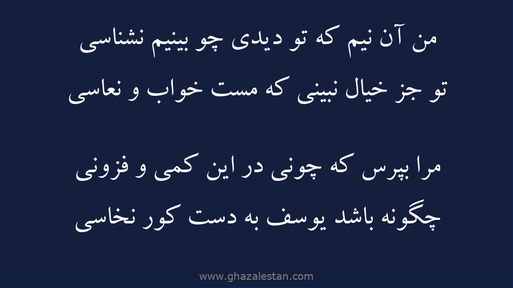 تو جز خیال نبینی كه مست خواب و نعاسی