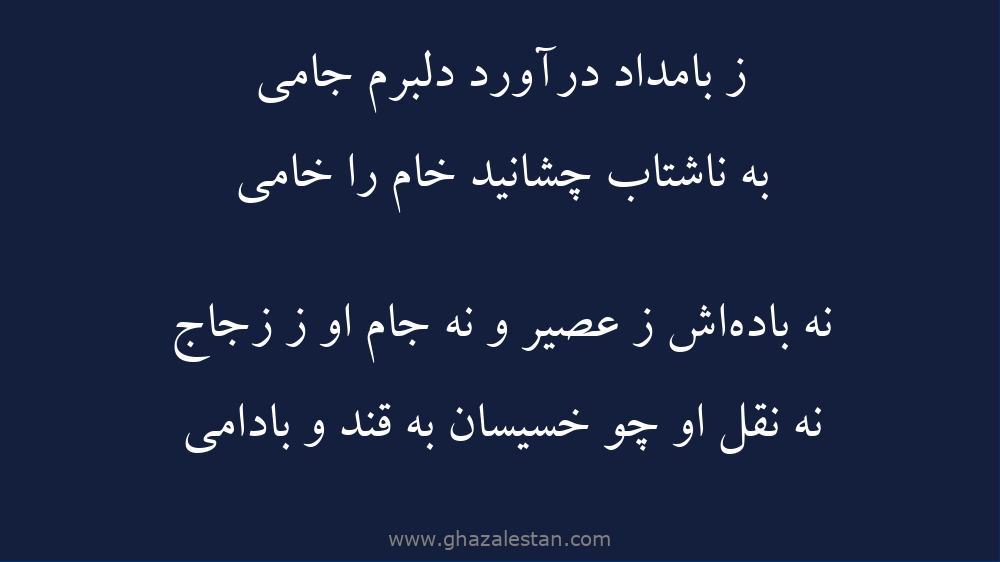 نه بادهاش ز عصیر و نه جام او ز زجاج