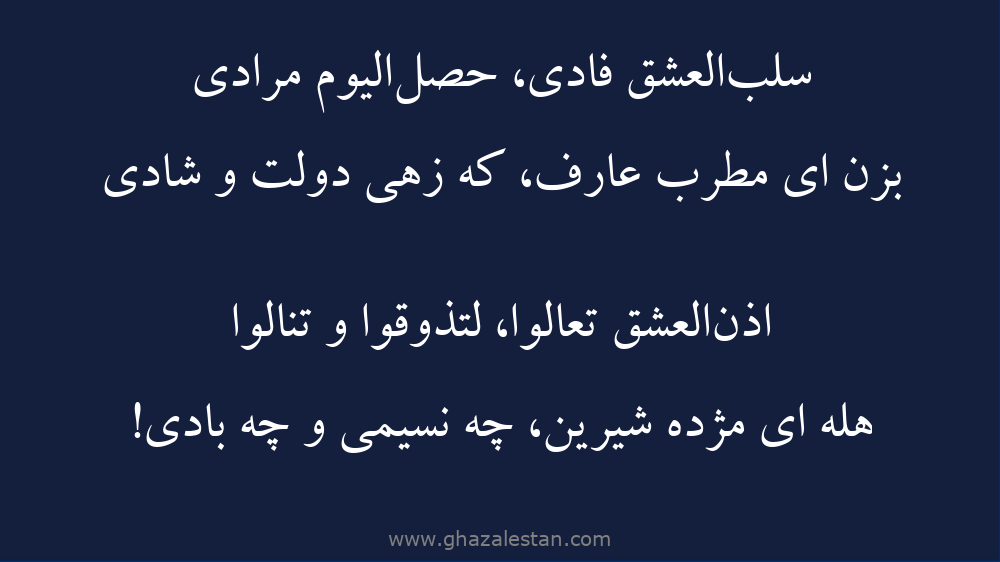 بزن ای مطرب عارف، كه زهی دولت و شادی