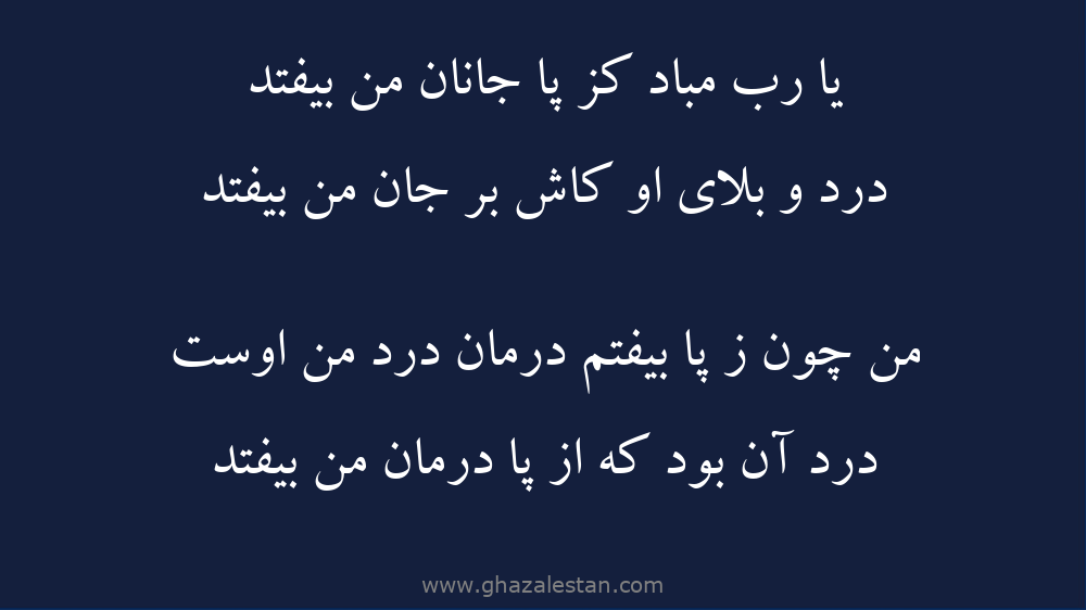 يا رب مباد کز پا جانان من بيفتد