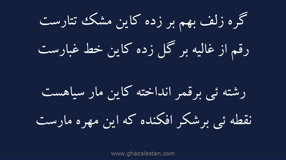 زلف شبرنگ بهم بر زده يعنى شب تارست