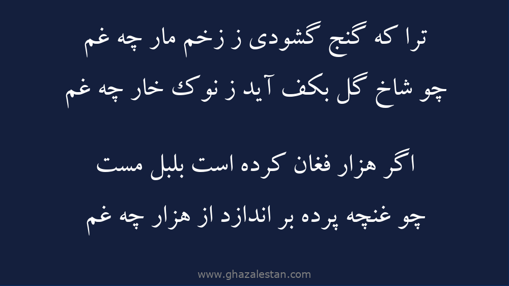 چو شاخ گل بکف آيد ز نوک خار چه غم