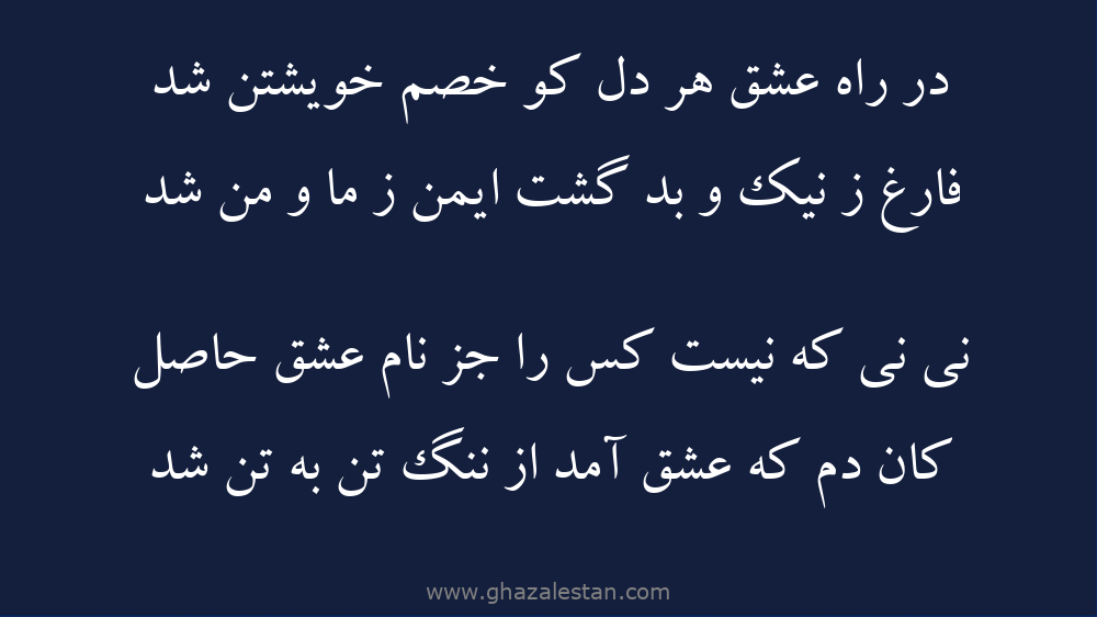 فارغ ز نيک و بد گشت ايمن ز ما و من شد