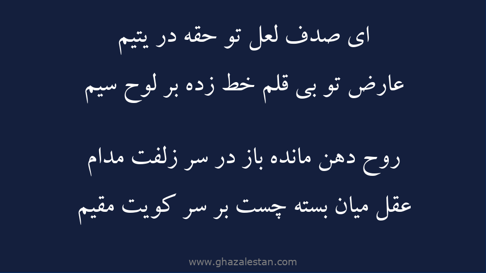 زانکه سر زلف توست بر صفت جيم و ميم