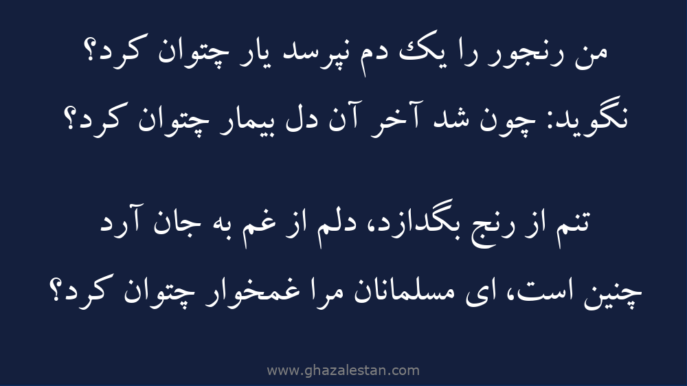 چنين است، اى مسلمانان مرا غمخوار چتوان کرد؟