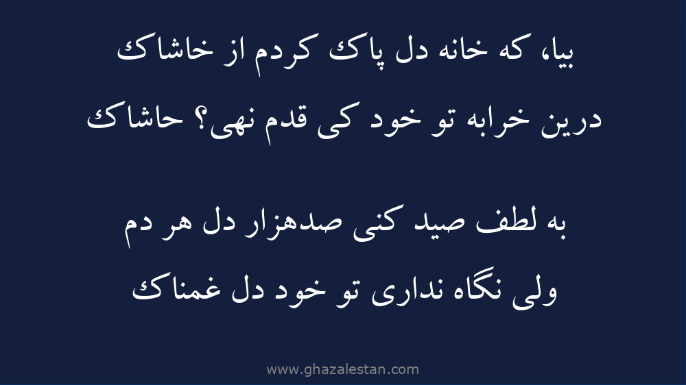 بيا، که خانه دل پاک کردم از خاشاک