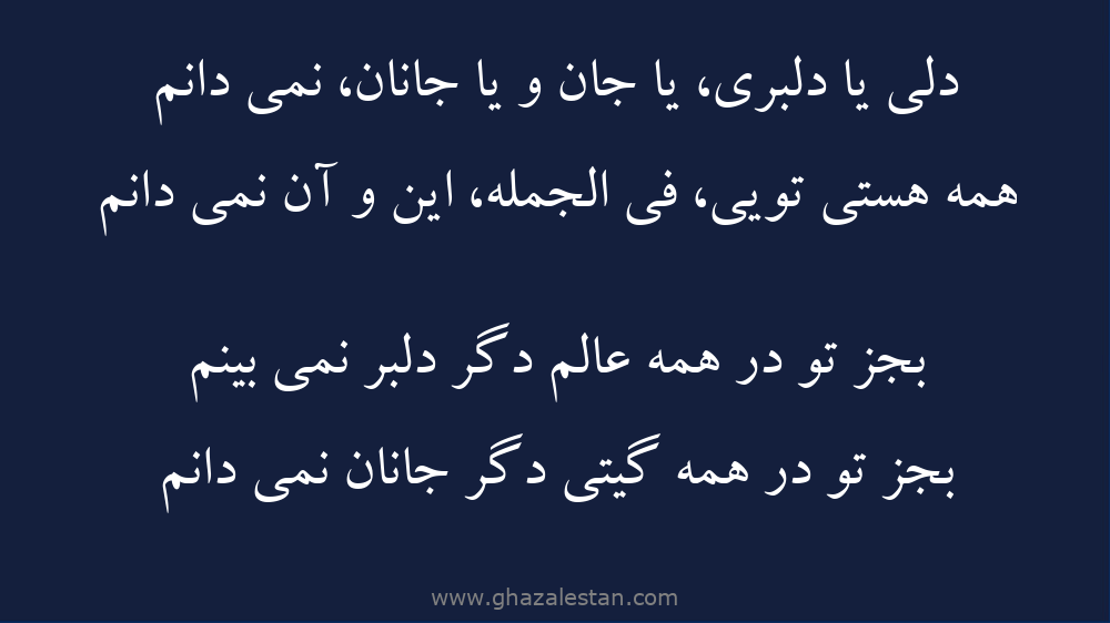 دلى يا دلبري، يا جان و يا جانان، نمى دانم