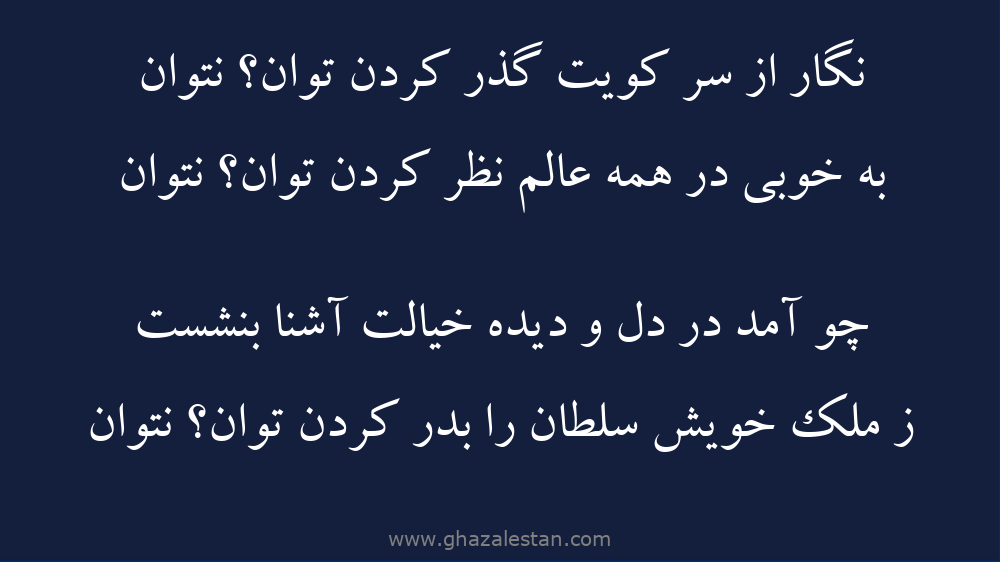 ز ملک خويش سلطان را بدر کردن توان؟ نتوان