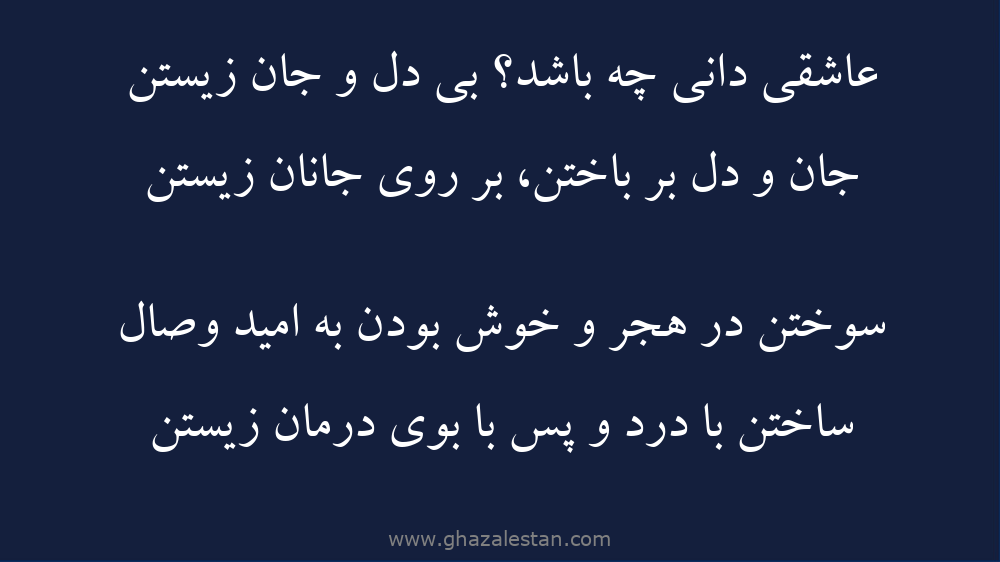 عاشقى دانى چه باشد؟ بى دل و جان زيستن