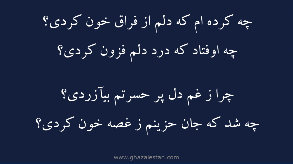 نظر به حال دلم کن، ببين که: چون کردي؟