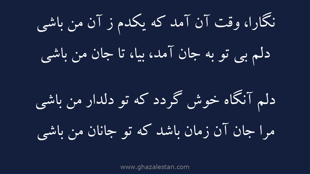 نگارا، وقت آن آمد که يکدم ز آن من باشى