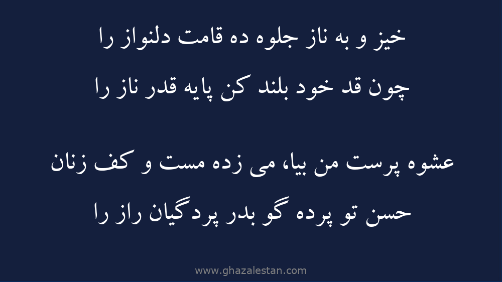 عشوه پرست من بيا، مى زده مست و کف زنان