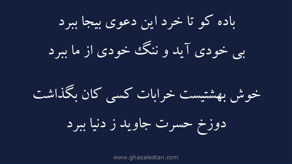 خوش بهشتيست خرابات کسى کان بگذاشت