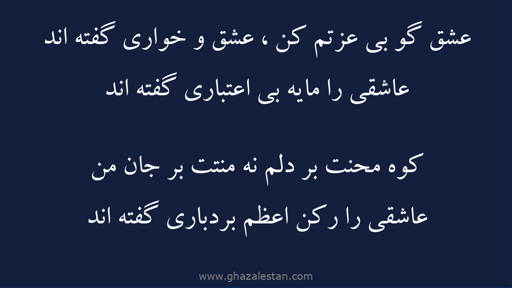 عشق گو بى عزتم کن ، عشق و خوارى گفته اند