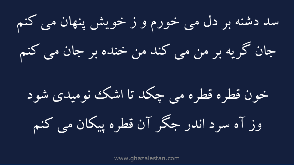 سد دشنه بر دل مى خورم و ز خويش پنهان مى کنم